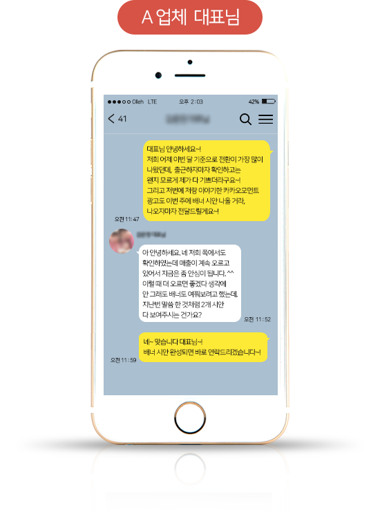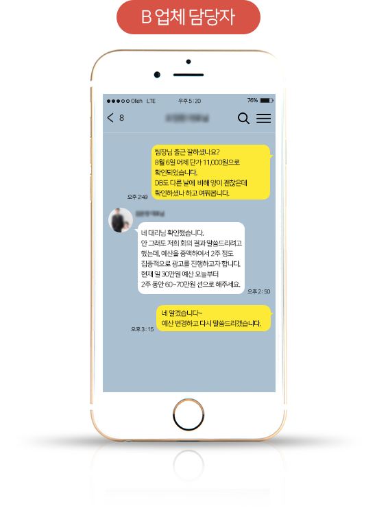 광고 효율을 먼저 생각하는 마케터의 그 마음 그대로, 원활한 커뮤니케이션을 진행하고 있습니다.
